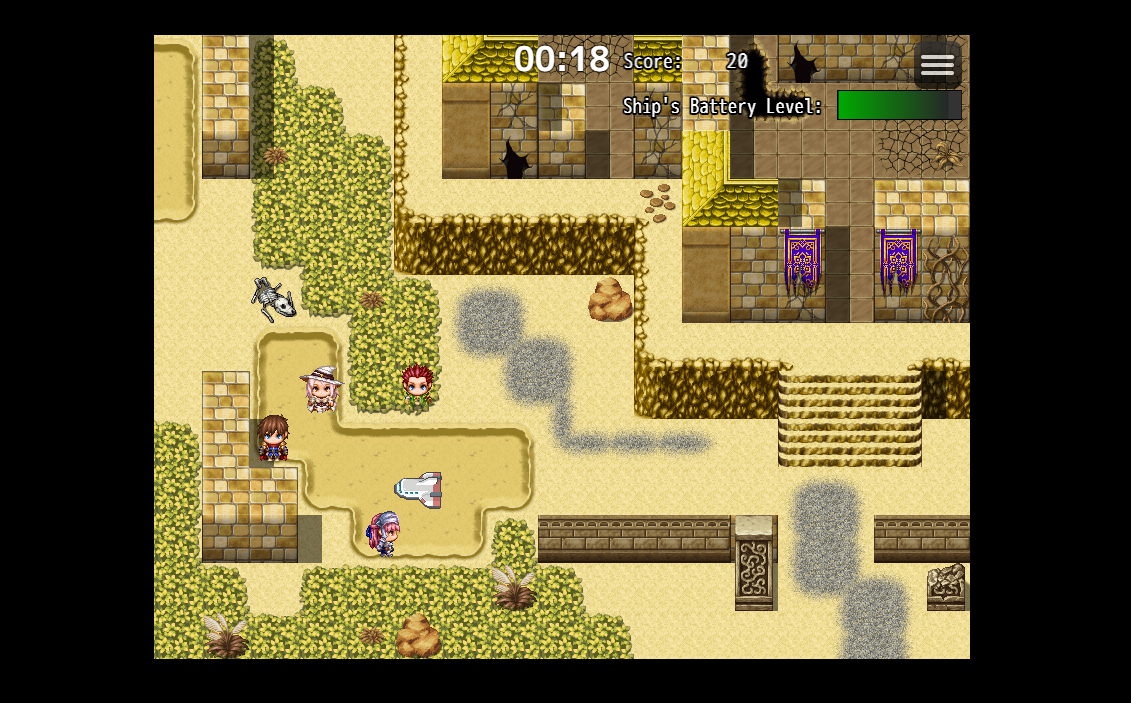 Overall map with actionable items for the player to interact with, including play timer.